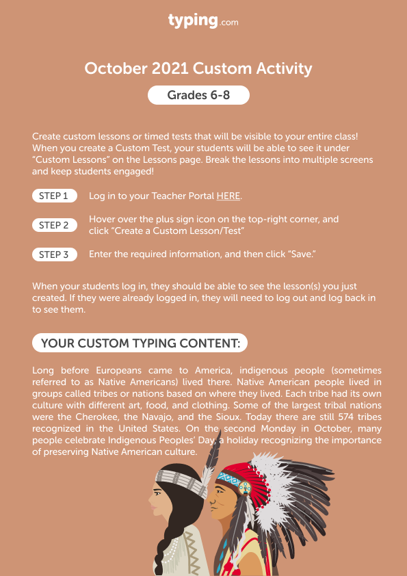 Knowing that Halloween is just around the corner, why not get them even more excited about the project by having them design and build a haunted house, a spooky building, or a creepy bridge? Or, if your goal this month is to increase your student’s typing speed and accuracy scores, why not set up an all-class challenge where students set personal goals and earn rewards for putting forth their best effort on Halloween-themed typing activities? Check out our free, October-themed custom lessons for your classroom below!